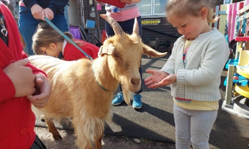 Robins and Fledglings had a very special visitor this morning. He 'trip-trapped' his way into The Nest to say hello!