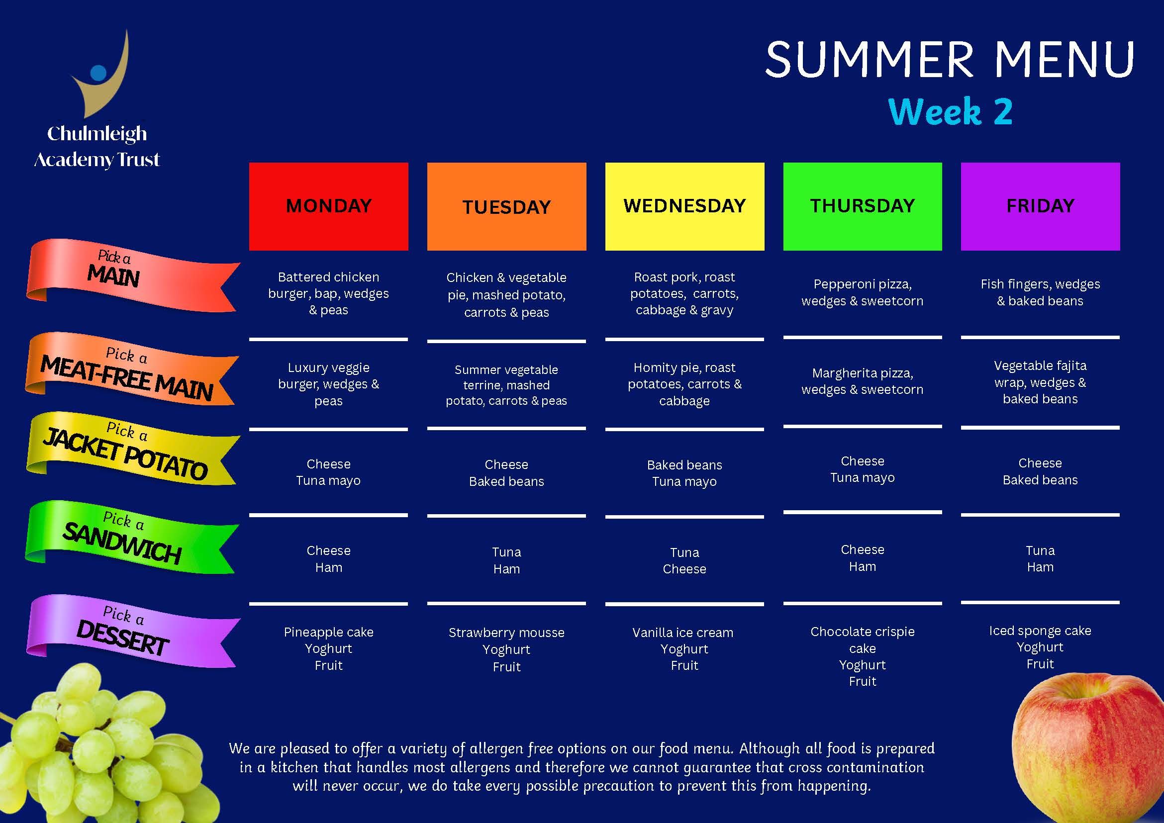 All meals are freshly made to order at Chulmleigh College and transported to Lapford Primary School each day.